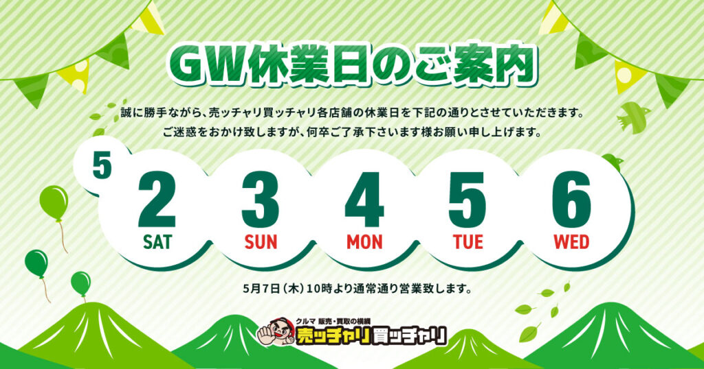 誠に勝手ながら、以下の期間をゴールデンウィーク休業日とさせていただきます。