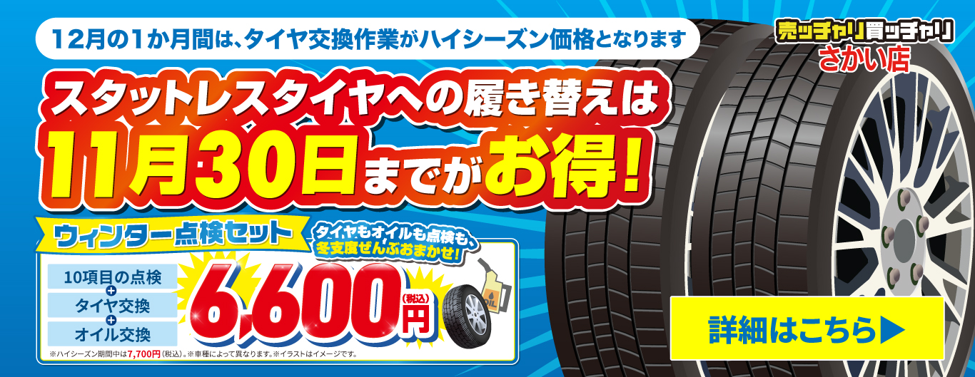 【11月中がおトク!】12月1日〜28日までタイヤ交換料金がハイシーズン価格となります。