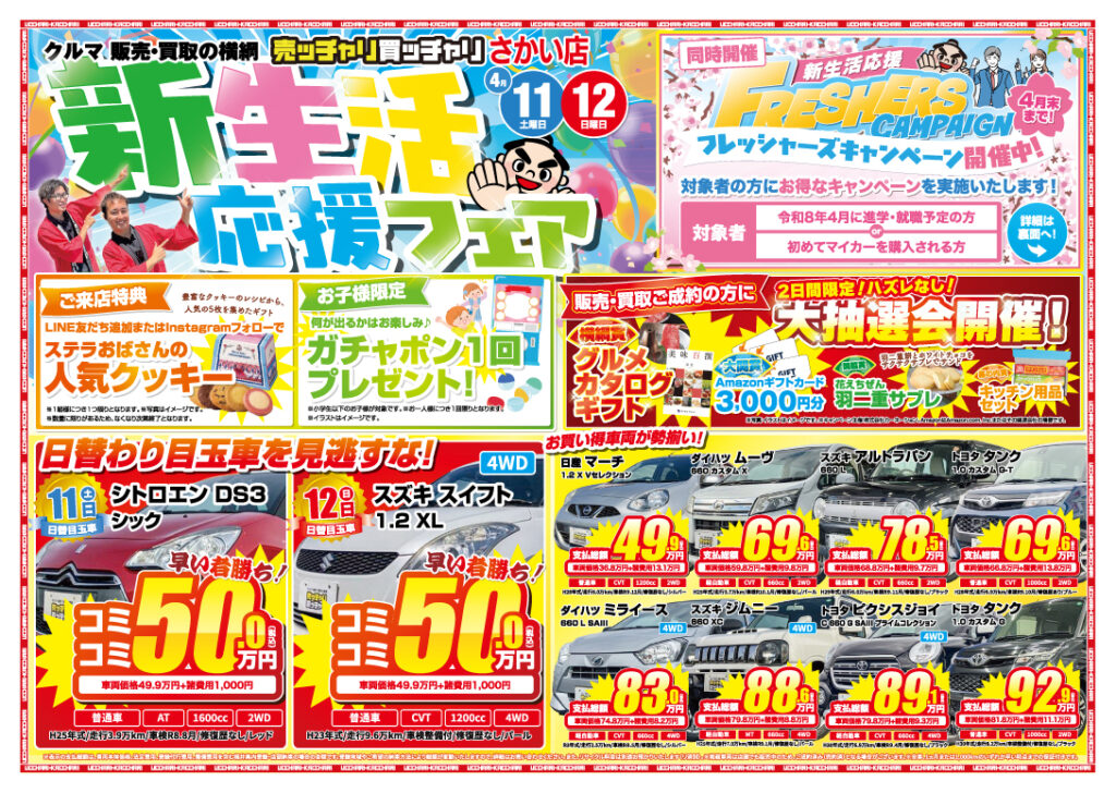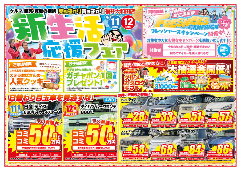 【Webチラシ】4月11日〜12日新生活応援フェア開催!さらに特別低金も!